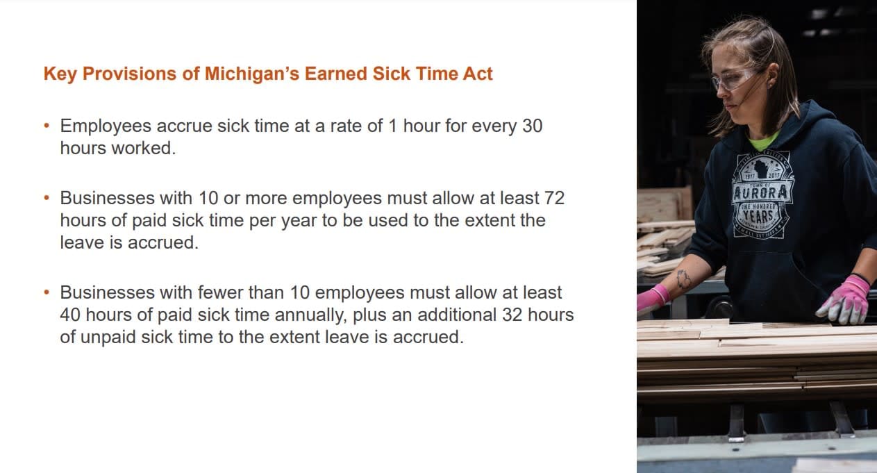 Effective February 21, all employers in Michigan with 10 or more employees, except for those employed by the United States Government, must comply with the new Michigan Earned Sick Time Act. This includes salaried (both exempt and non-exempt) and full and part-time hourly workers.
